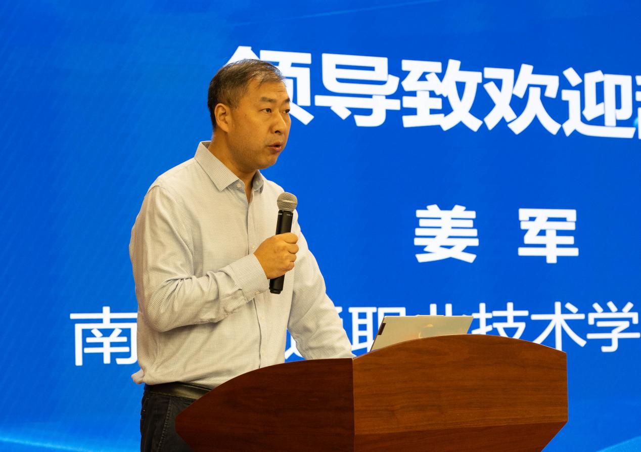 上午开幕式及会议由南京交通职业技术学院建筑工程学院院长张文斌主持。南京交通职业技术学院副校长姜军在致辞中强调,建筑业“三化”转型是国家战略,职业教育需紧跟产业变革,培养适应新质生产力需求的高素质技术技能人才。江苏省建设教育协会秘书长成宁指出,本次研讨会是落实住建部政策导向的重要实践,旨在推动专业建设与城市更新需求深度融合。江苏省建设职业教育行业指导委员会副秘书长陈益武从行业标准制定与企业技术赋能角度,提出“校企协同、标准先行”的行动建议。下午会议开始由北京睿格致科技有限公司董事长周晓奉致辞。